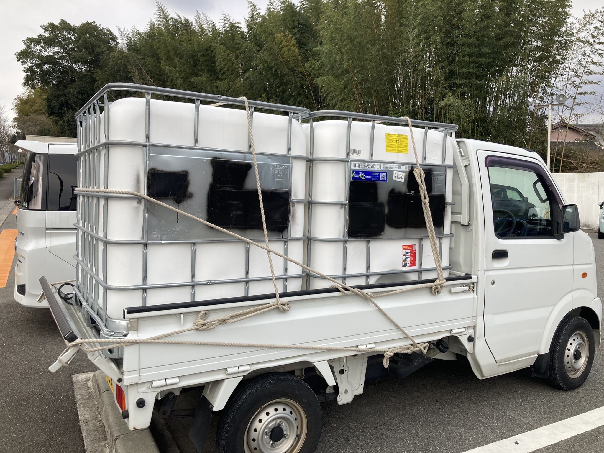 2つは、プラスチック製のタンクで容量1000L